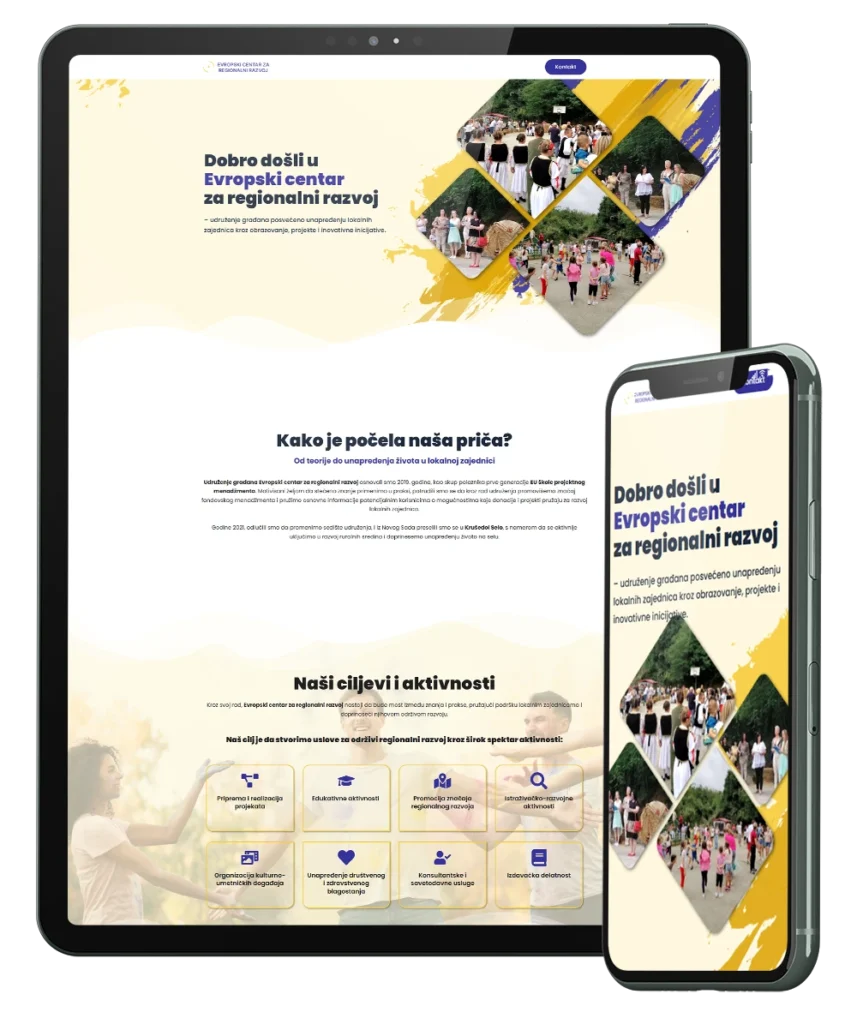 Jednostran, vizuelno upečatljiv sajt osmišljen da jasno predstavi projekte i vrednosti nevladine organizacije.