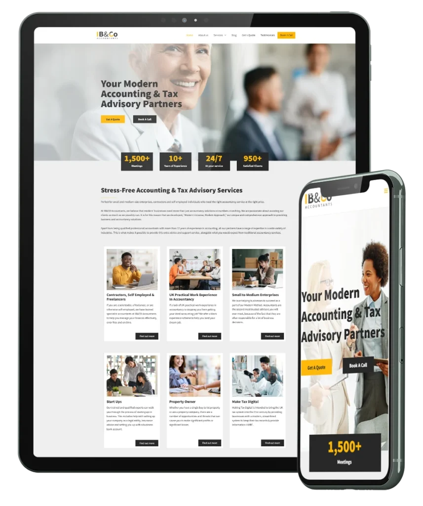 Kompletan redizajn UK accounting brenda – od logoa i kolor palete, do strukture i dizajna sajta.
