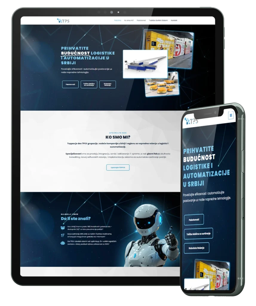 Izrada korporativnog sajta za TPSX Group sa fokusom na jasno predstavljanje misije kompanije – uvođenje inovacija i robotizacije logističkih procesa na srpskom tržištu.